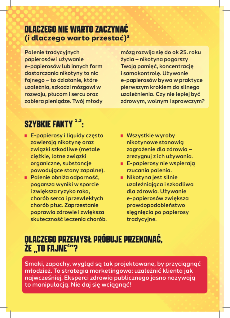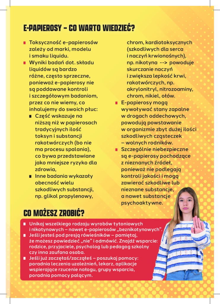 Z roku na rok rośnie popularność e-papierosów, szczególnie u młodych osób. Badania jednoznacznie dowodzą, że e-papierosy maja negatywny wpływ na zdrowie człowieka, w szczególności na układ oddechowy i immunologiczny oraz sposób działania niektórych obszarów mózgu.