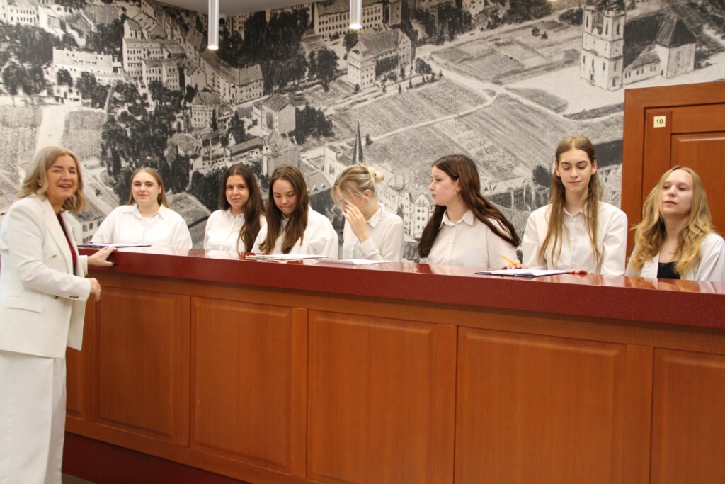 Na ręce dyrektor Moniki Rój złożono wiele gratulacji i prezentów. Były też m.in. pięknie oprawione międzynarodowe gratulacje branżowe. Można było także złożyć wpis do księgi pamiątkowej szkoły.