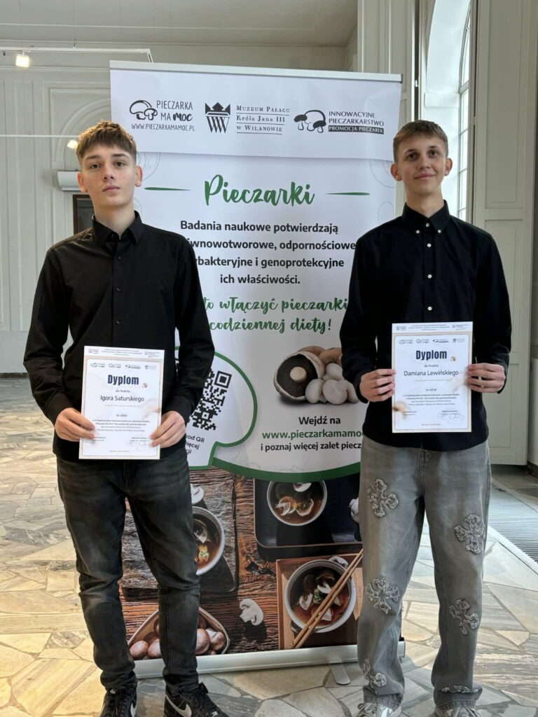 14 stycznia 2026 r. uczniowie ZSG Piła – Igor Saturski (3b) i Damian Lewiński (3c) – wzięli udział w Finale IV Ogólnopolskiego Konkursu Kulinarnego „Gotowanie ma moc. Pieczarka ma moc”.